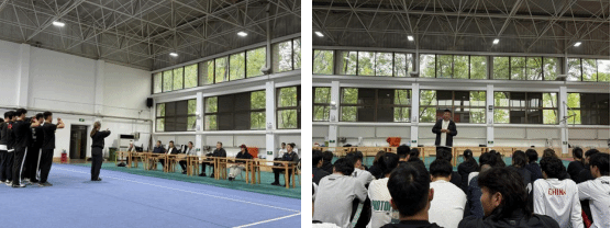 展演结束后,m88明昇附属小学石建军老师结合中小学教学课堂一线教学经验,为同学们带来了一场生动的微教学讲座。他就“如何上好一堂体育课”分享实用教学方法与管理策略,帮助学生进一步理解课堂教学的真实情境与组织技巧。